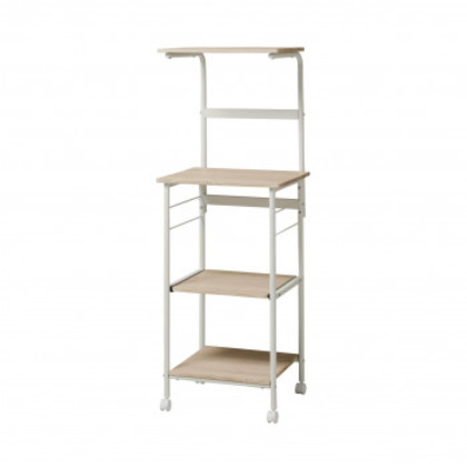 | キャスター移動も可能なので、床の掃除も簡単に行えます。上部天板は背面から立ち上がるフレームによりトースターやストック品をスッキリ収納可能です。中段棚はスライド式なのでポットや炊飯器の蒸気を逃がし取り出しもスムーズです。 |