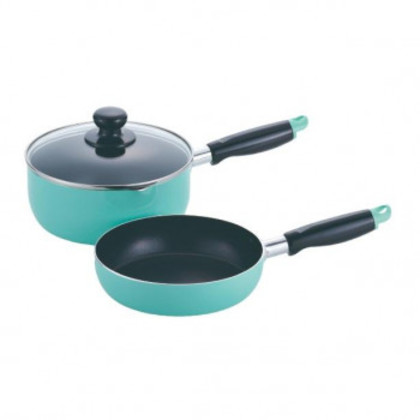 カラフルスマイル IH対応雪平鍋&フライパン18cmセット(グリーン) CM-9629 1033651 |b03