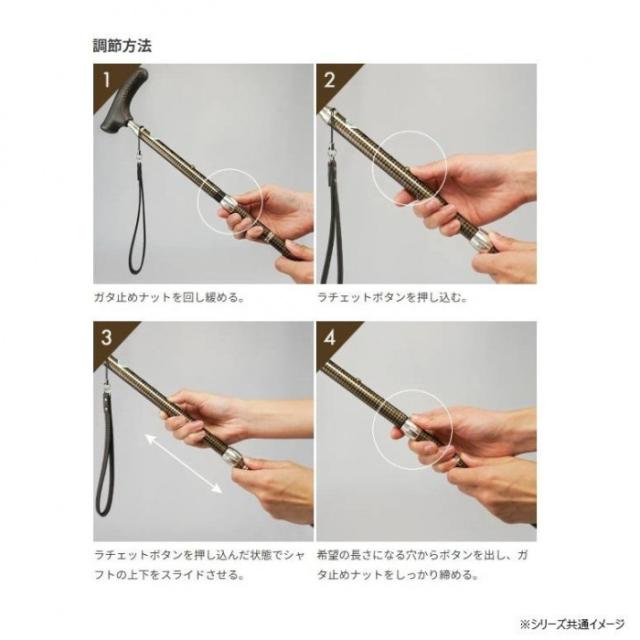 | 素材・材質 | シャフト素材:耐食アルミ18φ+16φ 先ゴム:PP-18(滑りにくい安全先ゴム) ストラップ:本革ストラップ |