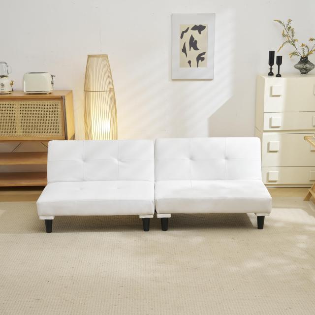 2台1セット、リクライニング可能な分割式ソファベッド。組み合わせ方で、分割して1人掛けソファ、繋げて3人掛けソファ、片側だけ倒してカウチソファ、全ての背もたれを倒してソファベッドなど、お部屋に合わせて多様な使い方ができます。