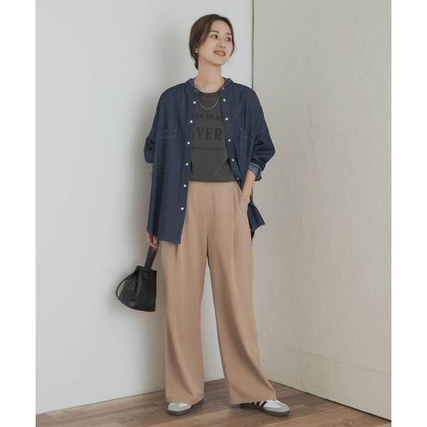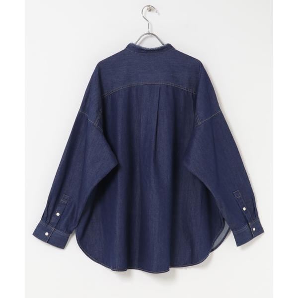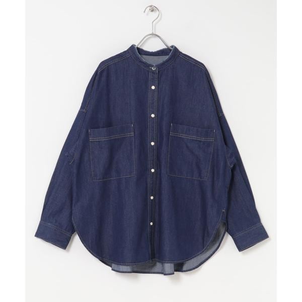 抜け感シルエットのライトデニムバンドカラーシャツ