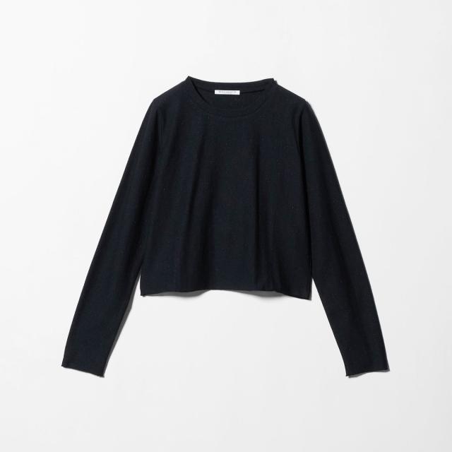 着回し力抜群のミニマルなルックスのラメカットソー。