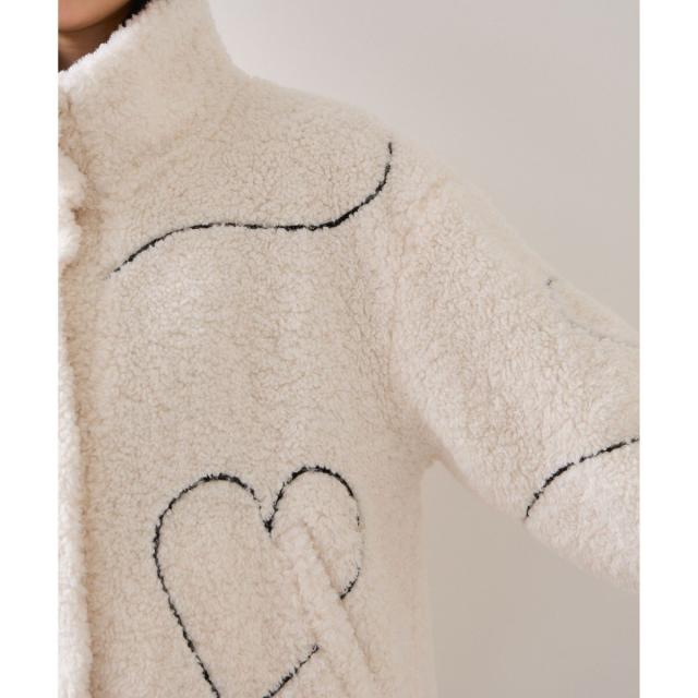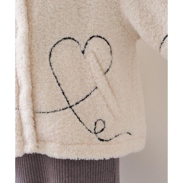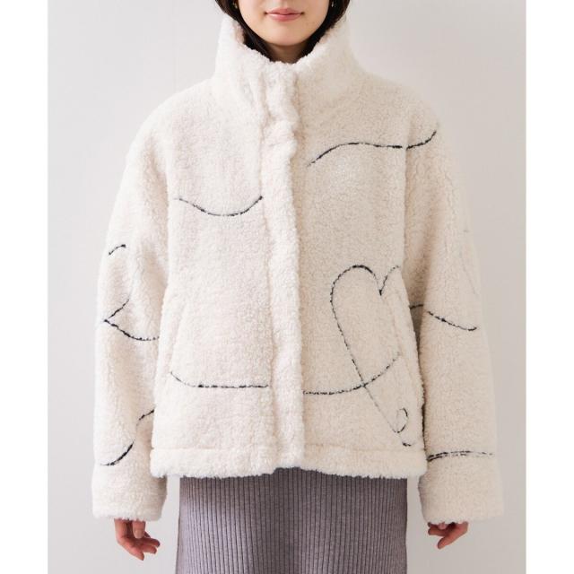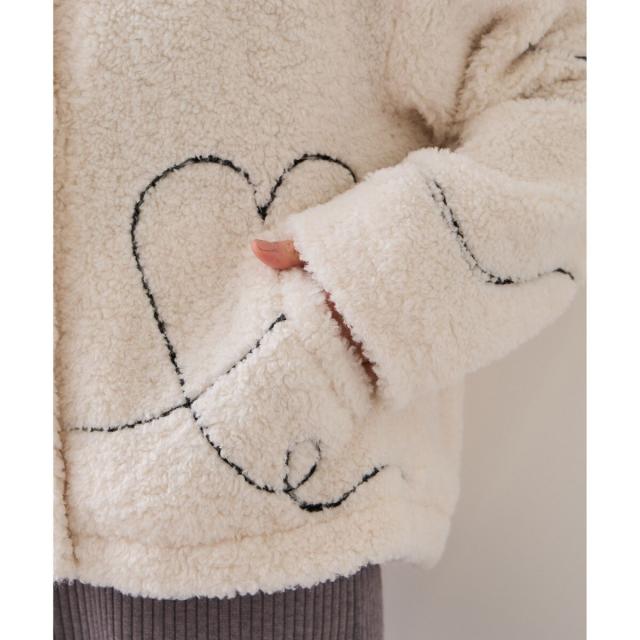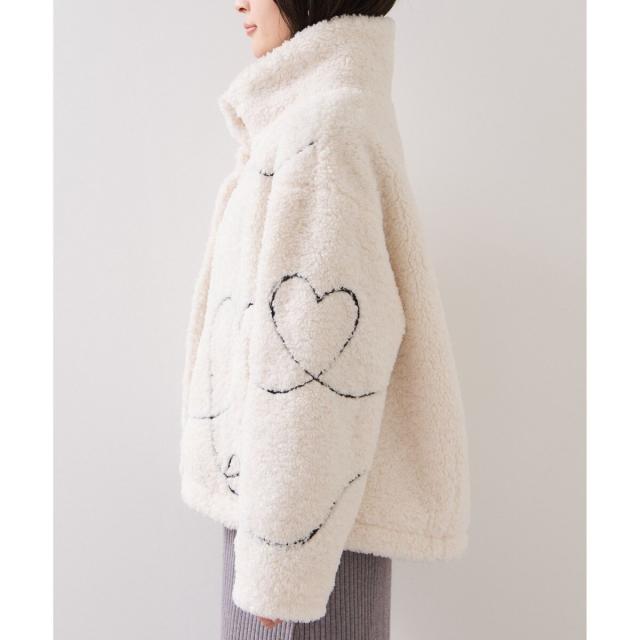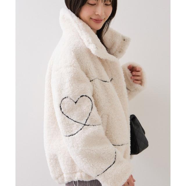 くるくるボアの刺繍アクセントのブルゾンは1着で映えること間違いなしです。前面と腕にだけほどこした程よいバランスの刺繍にはさり気なくハートが。