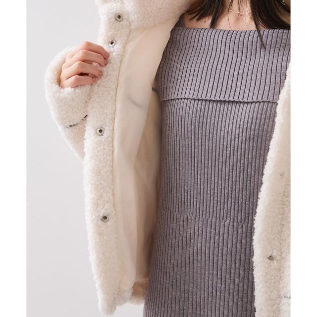 ボアブルゾンはカジュアルな雰囲気なので、ミニ丈×ブーツで肌見せポイントを作ってもらうのがおすすめ。