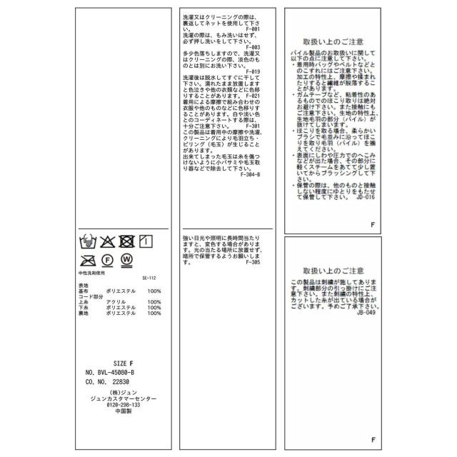 ■素材:(表地) (基布) ポリエステル 100% (コード部分) (上糸) アクリル 100% (下糸) ポリエステル 100% (裏地) ポリエステル 100%