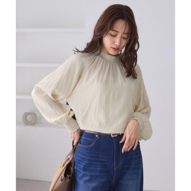 ・ボリュームスリーブ×シャーリングカフスで、袖口にメリハリを効かせた女性らしいシルエット。