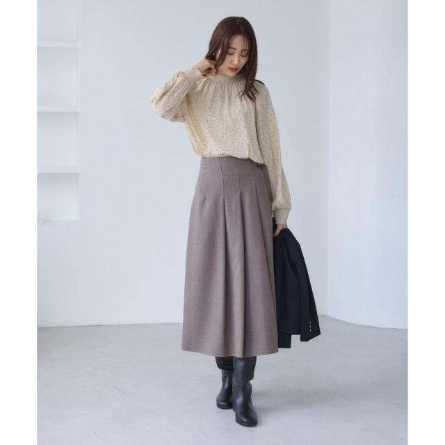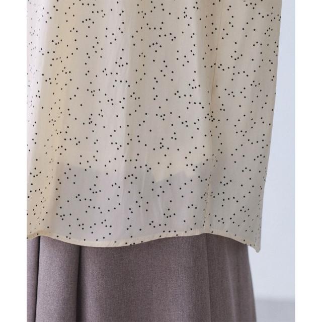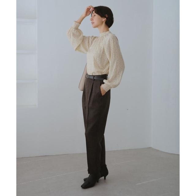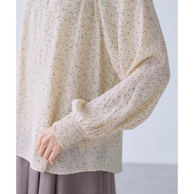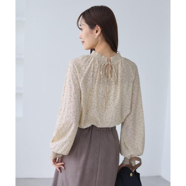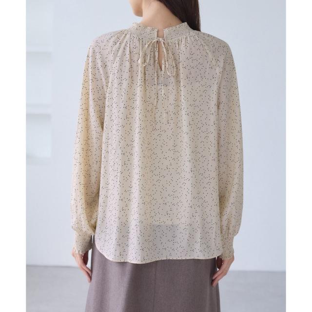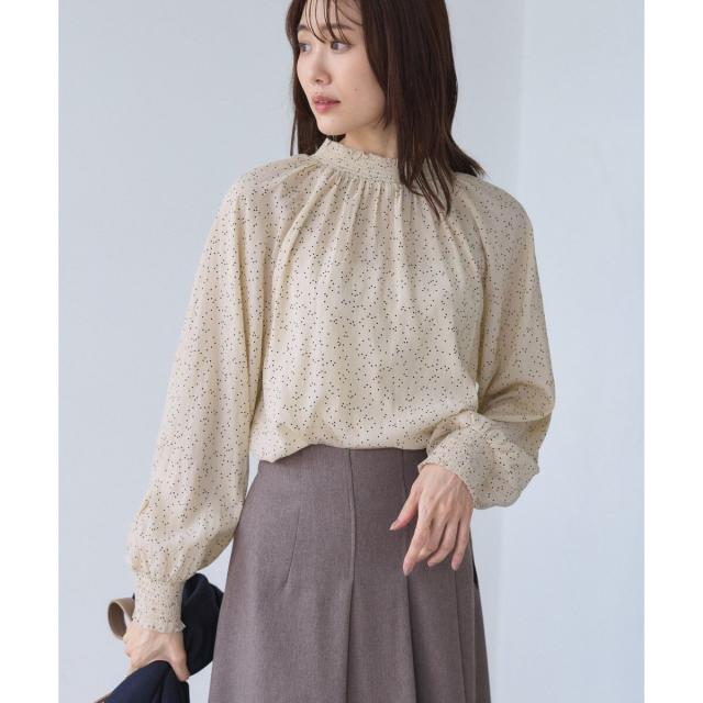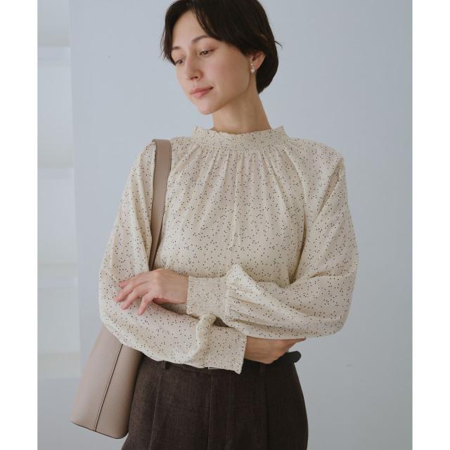 ・襟のシャーリングがレディライクなポイントになっているプルオーバーブラウス。