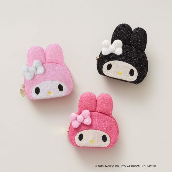 マイメロディのお顔を立体的に表現したフェイス型ポーチ。
