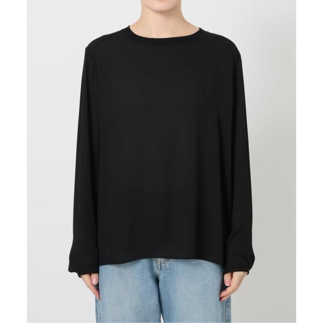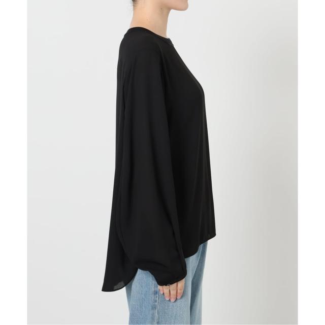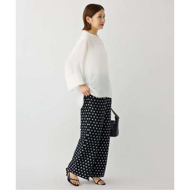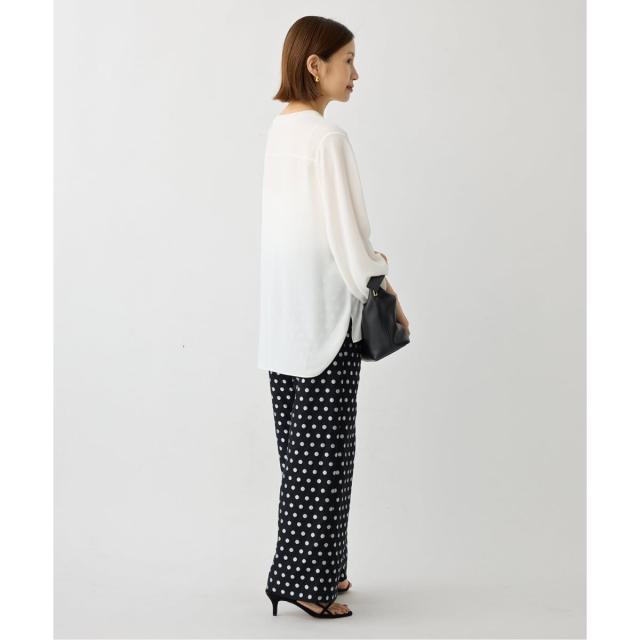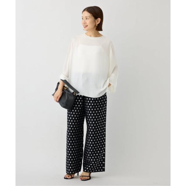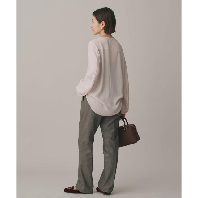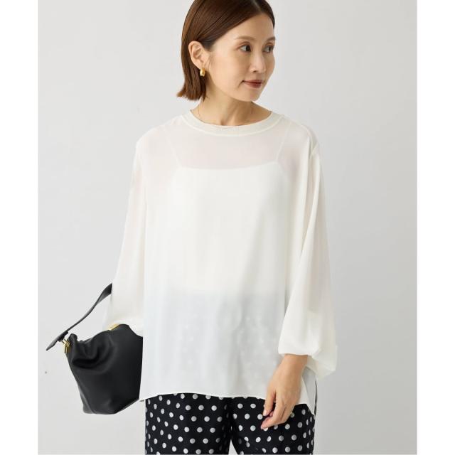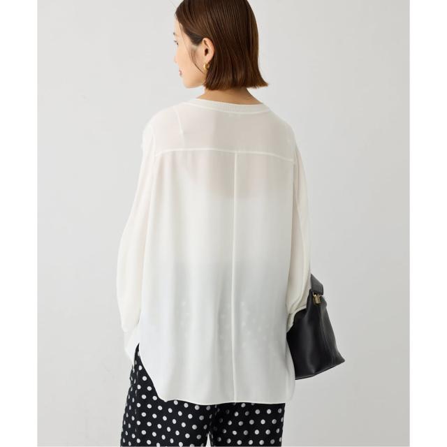 とろみと透け感のあるジョーゼット素材を使用し、襟回りにシルク混のリブを丁寧に仕立てた上質なアイテム。