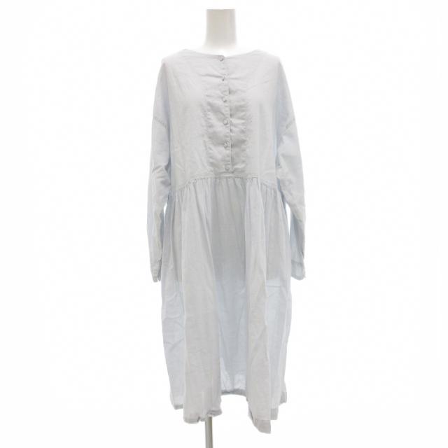 【中古】サマンサモスモス SM2 TSUHARU シャツワンピース リネン 長袖 ひざ丈 F ライトブルー /UO レディース