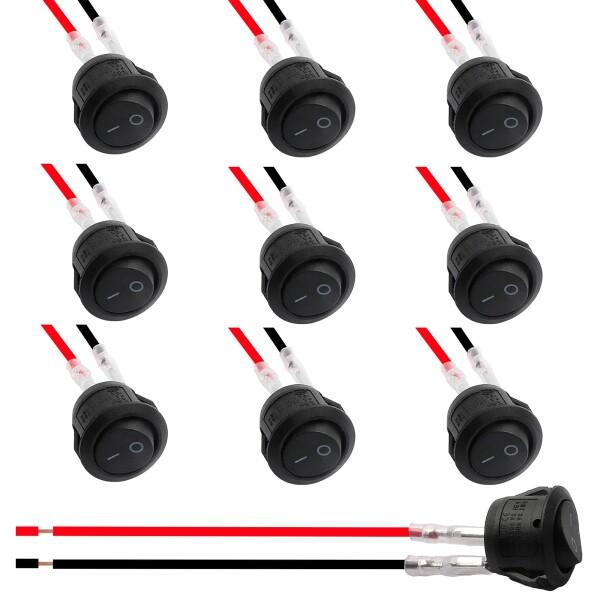 10個セット 小型ロッカースイッチ 2ピン 配線済み ブラック ラッチング式 丸型トグルスイッチ SPST ボート用