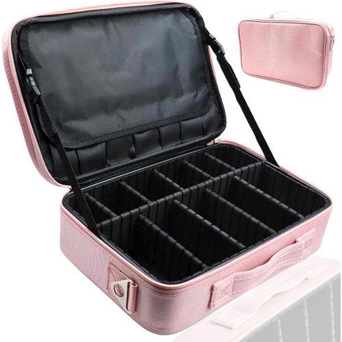 美容の専門家おススメ penogo メイクボックス 大容量 頑丈 Mサイズ プロ用 仕切り調節可能 化粧ポーチ コスメ収納 ブラシ入れ付き ピンク