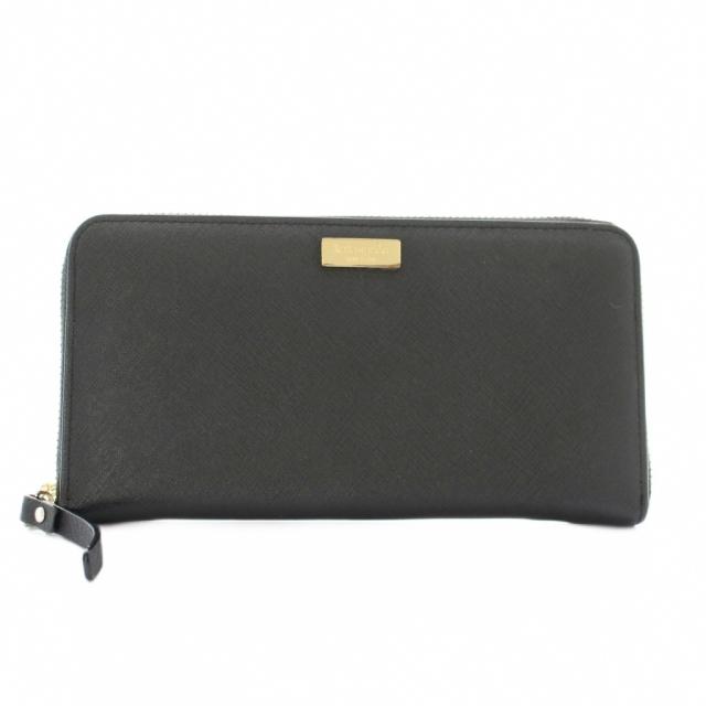 【中古】ケイトスペード 長財布 ウォレット ラウンドファスナー レザー ロゴ プレート 小銭入れあり 黒 WLRU2669