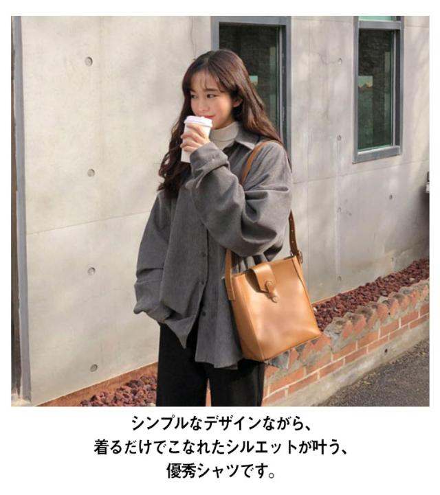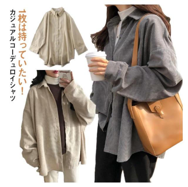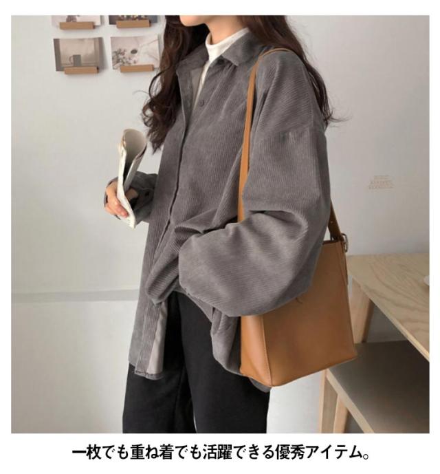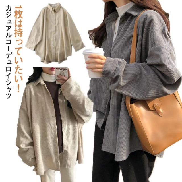 無地 オーバーサイズ 着痩せ トップス コーデュロイ ゆったり カジュアル レディース 冬 体型カバー 春 ビッグシルエット 秋 お出かけ 長袖 シンプル 韓国ファッション トレンド 定番 ジャケットシャツ 通学 ゆったり 大きめサイズ 重ね着 通勤 シャツ