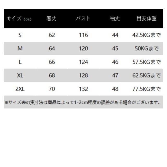| サイズ | S M L XL 2XL |