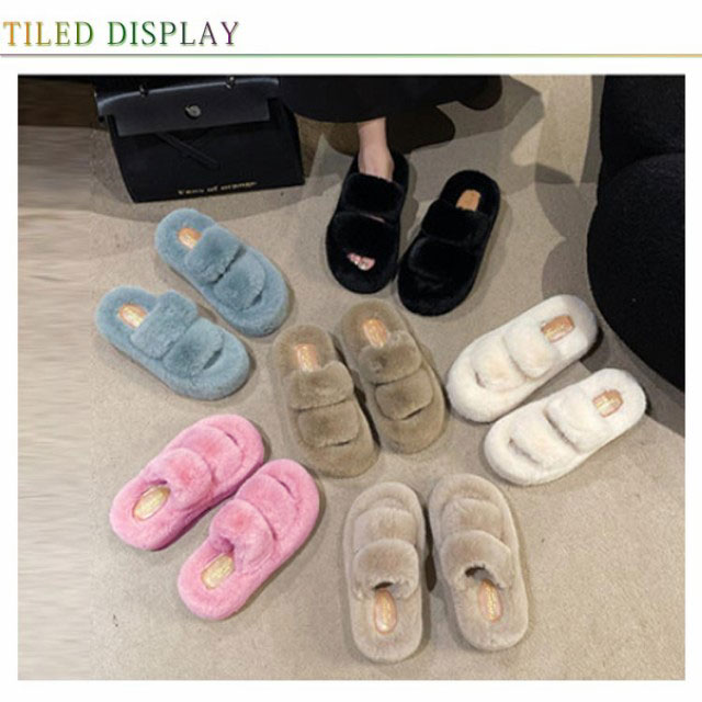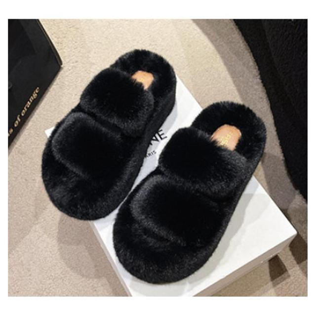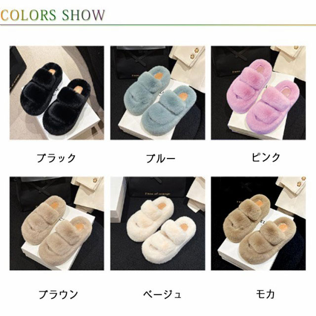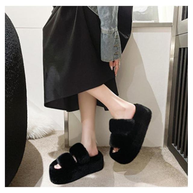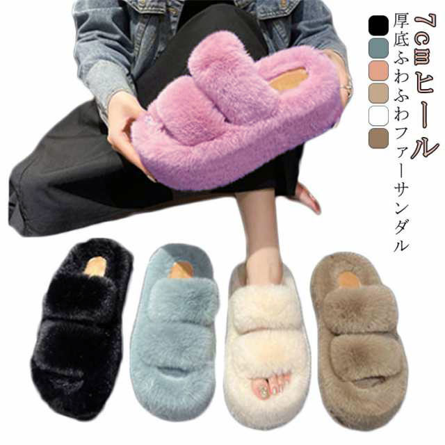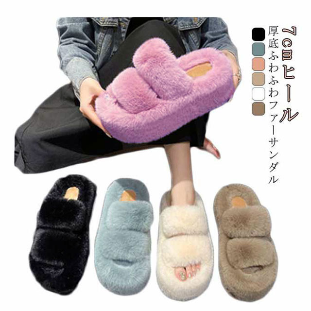 厚底 もこもこ 7cmヒール ファーサンダル ダブルベルト エコファー レディース ルームシューズ ふわふわ スリッパ 履きやすい 寒さ対策 外履き 秋