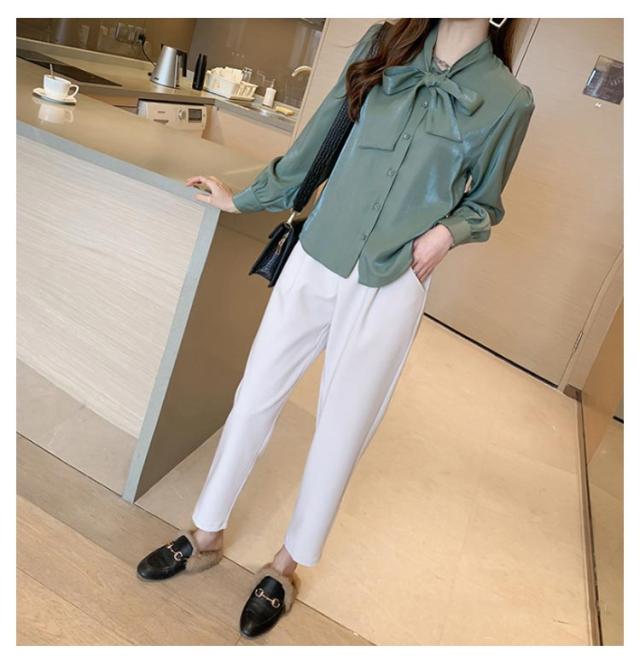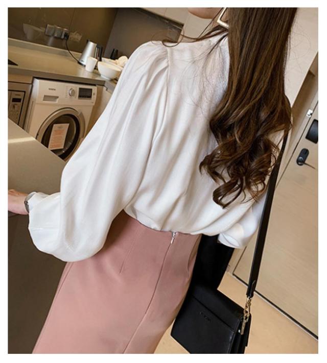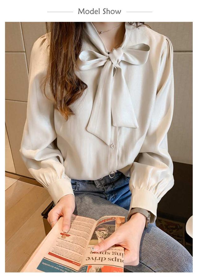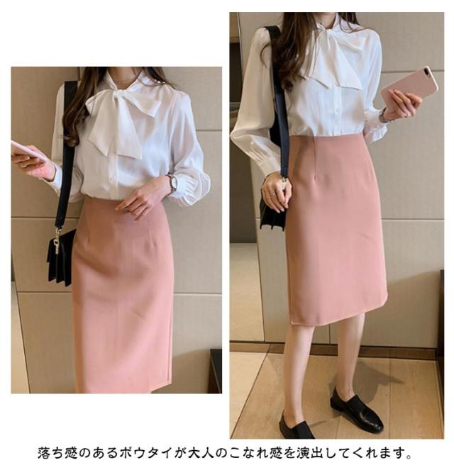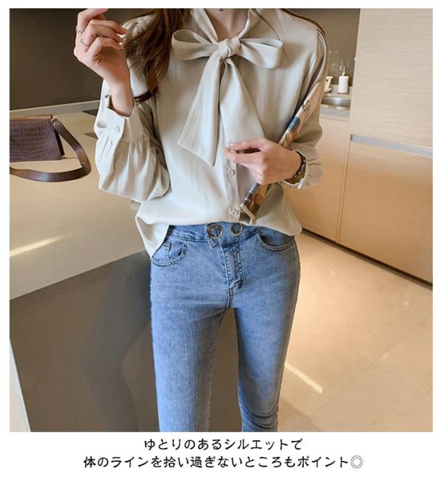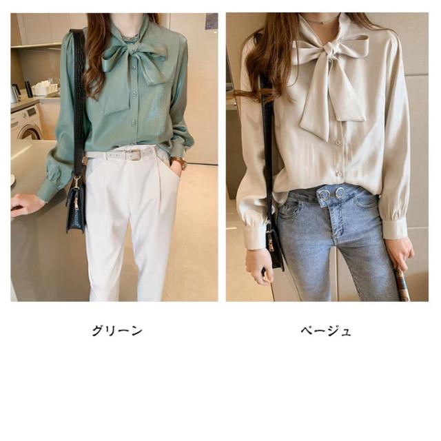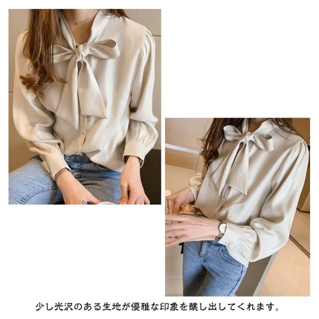 秋 ボウタイブラウス シャツ 送料無料 夏 リボン 無地 送料無料 冬 ブラウス 長袖 春 レディース トップス ふんわり 上品 エレガント リボンタイ リボン襟 シャツブラウス バルーン袖 ボリューム袖 オフィス カジュアル