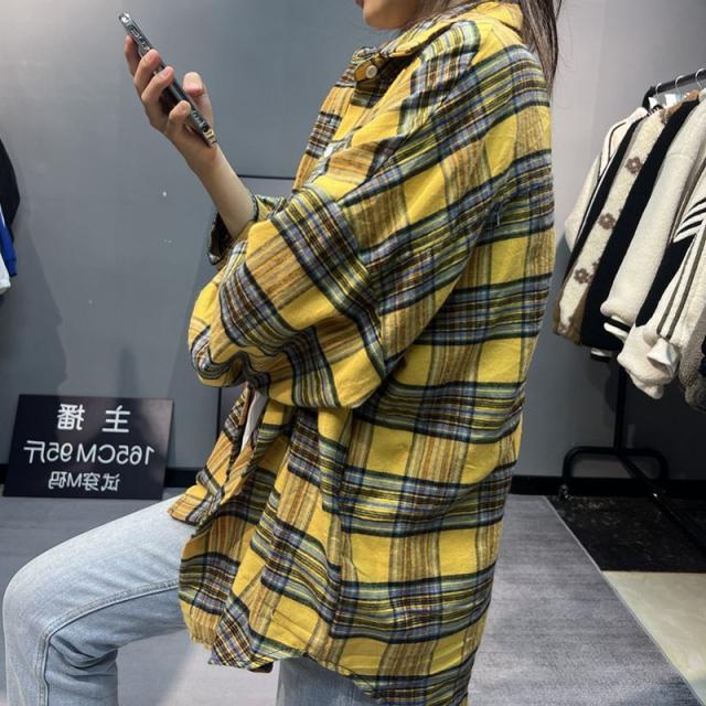 チェックシャツ レディース トップス 長袖シャツ 春 秋 冬 ロング丈 カジュアル 開襟シャツ シンプル きれいめ ネルチェック ドロップショルダー オーバーサイズ 大人 ゆったり 大きいサイズ