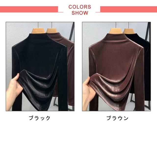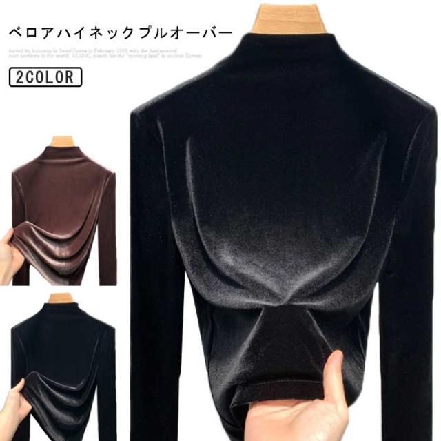 ハイネック 冬 ベロア 暖かい プルオーバー ベロア ロンT レイヤード トップス Tシャツ 防寒 保温 あったか 秋 レディース オフィスカジュアル おしゃれ きれいめ