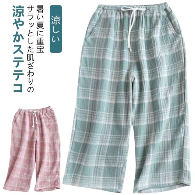 コットン ガーゼ 冬 7分丈 綿 メンズ 大きいサイズ 春 柄 秋 ルームウェア 部屋着 ショートパンツ ハーフパンツ チェック おしゃれ ステテコ 夏用 薄手 ルームパンツ ショート丈 レディース ポケット 涼しい ゆったり ズボン 短パン 夏