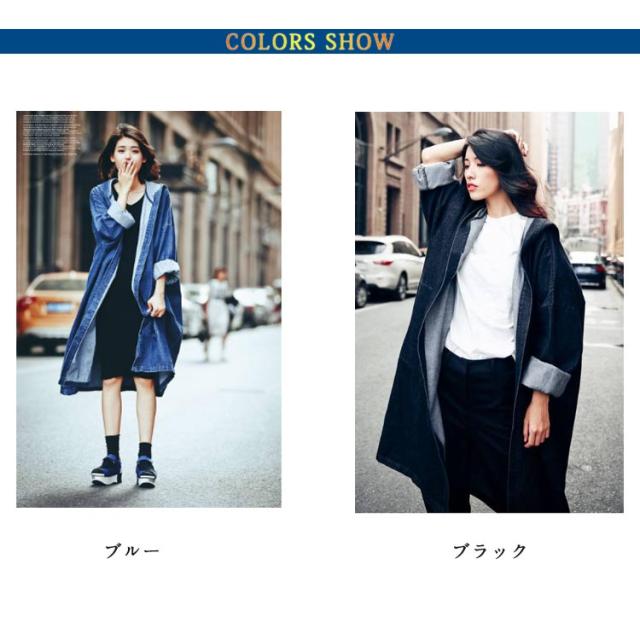 アウター デニムジャケット ロングコート マキシ丈 大人 コート デニム レディース フード付き 春ジャケット スプリングコート 羽織り ゆったり 体型カバー ロング丈 長袖 春 秋 デニムコート 可愛い シンプル カジュアル ジャケット 大きいサイズ 前開き 大人 女性