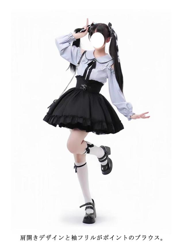 | 量産型から地雷系コーデまで活躍する上下セットです♪ 肩開きデザインと袖フリルがポイントのブラウス。 ハイウエストデザインのハートベルトがポイントのスカートです。 ウエストと裾にはフリルがあしらわれていて、ふんわりと広がるシルエット感がかわいい♪ | |