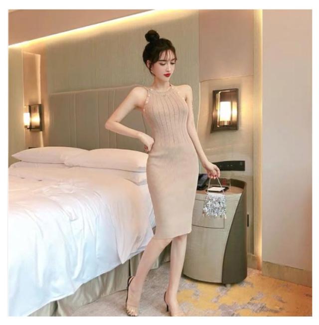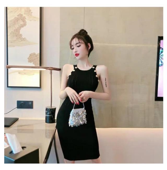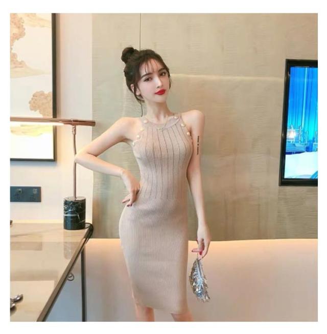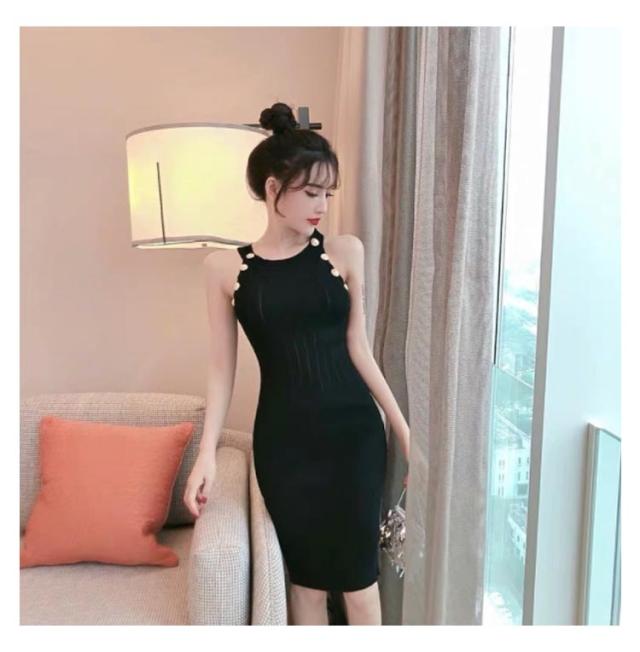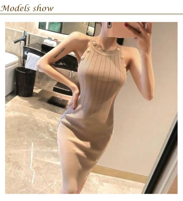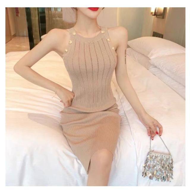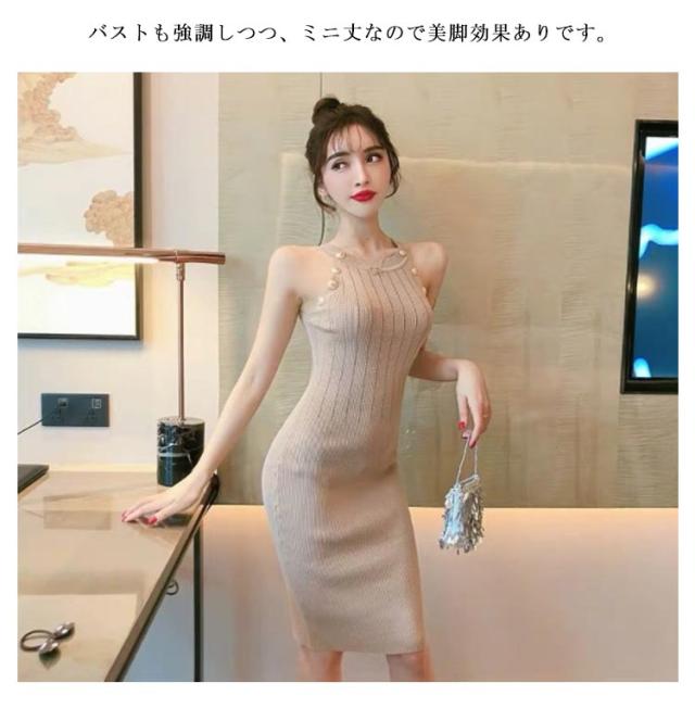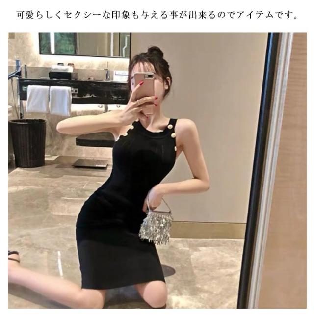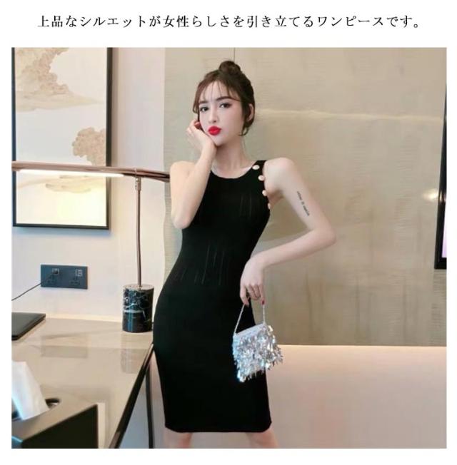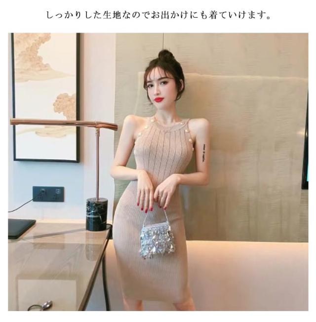 ワンピース ニットワンピ セクシー ノースリーブ タイト 春 可愛い オルチャン 肌見せ 秋 ラウンドネック ミニ丈 ひざ丈 ニットワンピ 無地 シンプル 上品 きれいめ ゴールドボタン 大人 レディース 韓国 夏