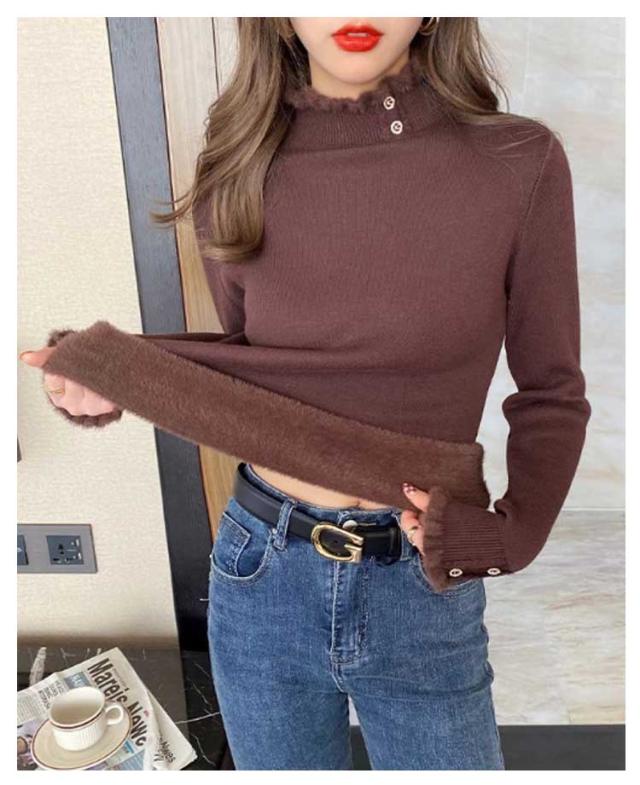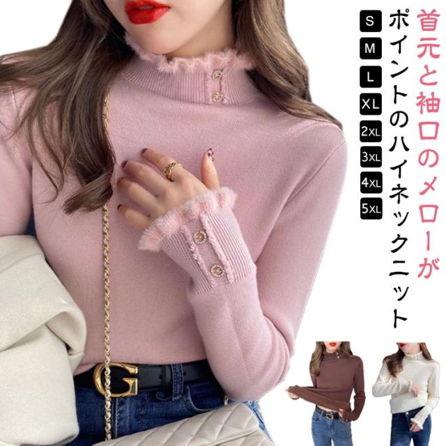 レディース 裏起毛 セーター もこもこ 冬 暖かい 重ね着 長袖 トップス 秋 おしゃれ 可愛い フリルネック ニット きれいめ ハイネック フェミニン 通勤 通学 女性 春 メローリブタートルニット プレゼント 無地 シンプル ニット ギフト 送料無料 カットソー