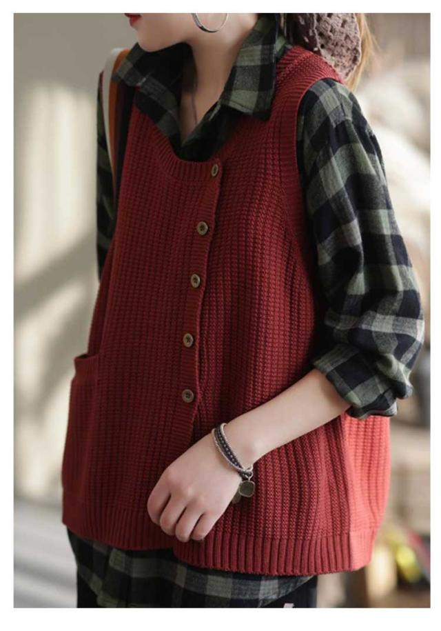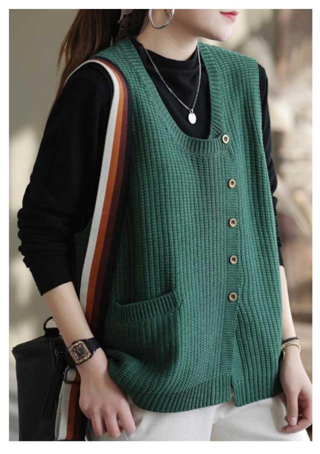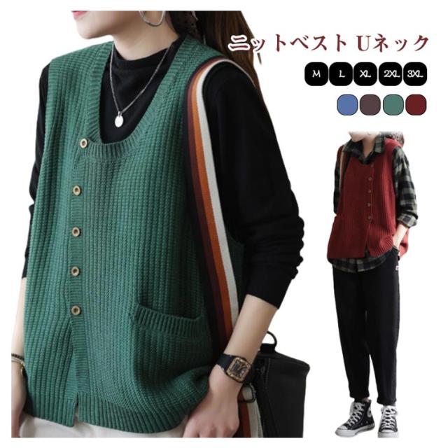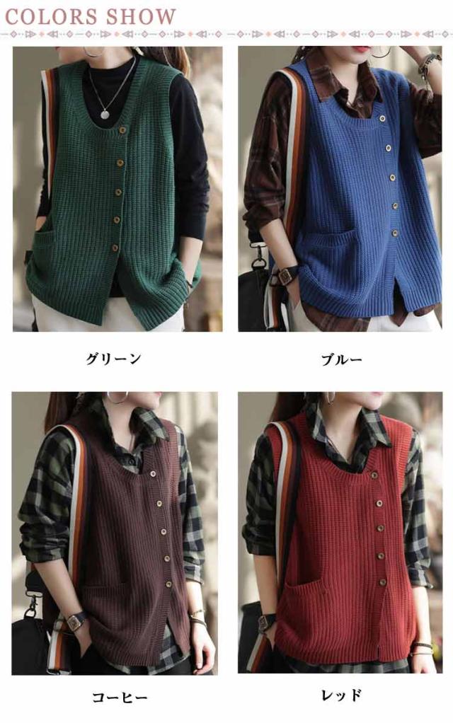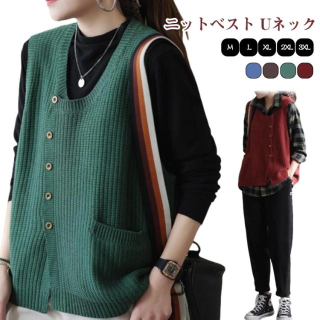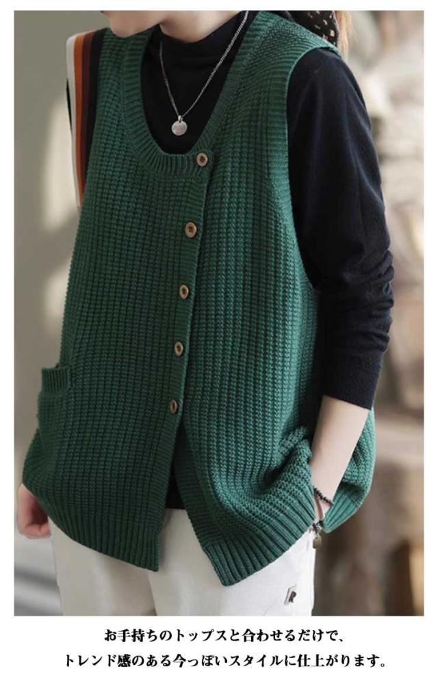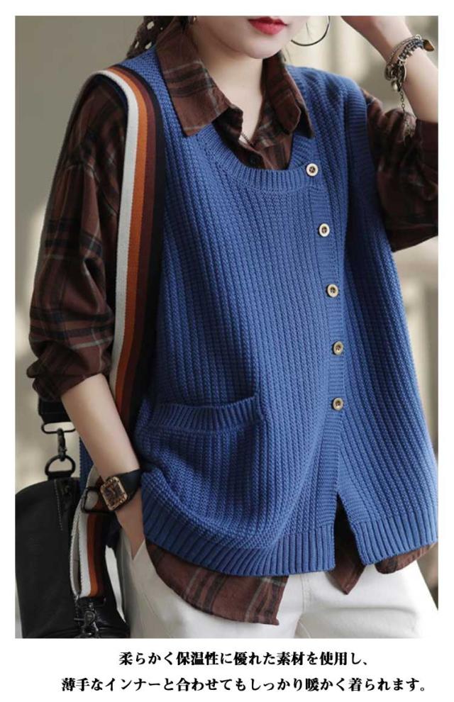 30代 ニットセーター ヒップカバー Uネック 無地 タンクトップ 春 セーター トップス きれいめ プルオーバー おしゃれ ノースリーブ ボタン 柔らかい レディース 体型カバー シンプル 厚手 冬 20代 秋 ショート丈 大人 ニットセーター ゆったり レイヤード 40代