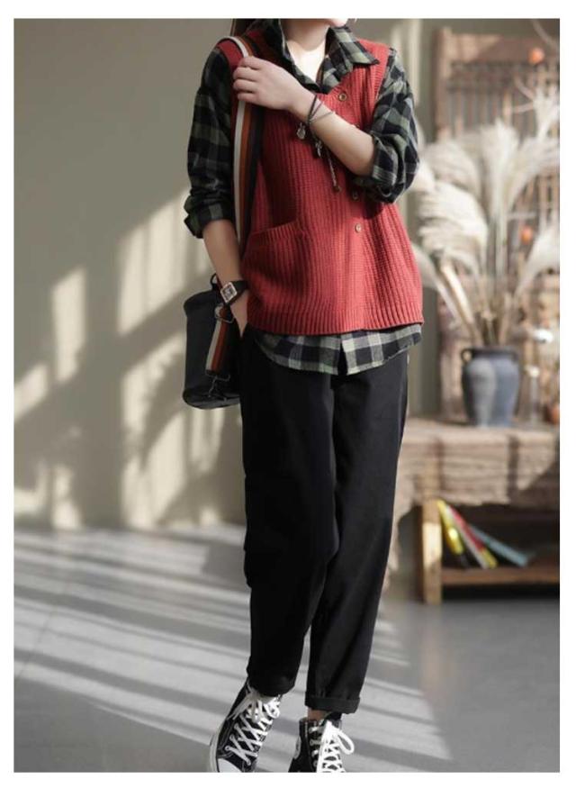| 重ねて着るからいろいろなコーデを楽しめるラウンドネックニットベスト。 ゆったりした着心地ではあるけどダボっとしすぎずまとまりのあるシルエットで、きちんと感のある雰囲気を演出。 ボリューム感のあるスリーブのトップスとも相性抜群のデザイン。ボタンが付いていて、目を引くワンポイントに。 柔らかく保温性に優れた素材を使用し、薄手なインナーと合わせてもしっかり暖かく着られます。 お手持ちのトップスと合わせるだけで、トレンド感のある今っぽいスタイルに仕上がります。 | |