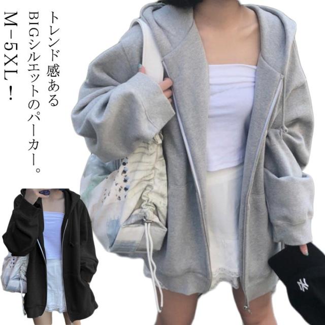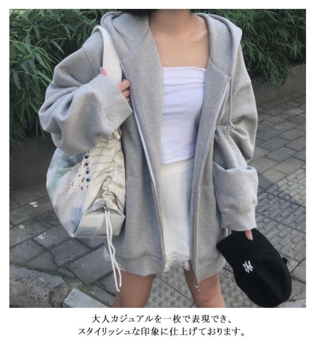 レディース 送料無料 大きいサイズ ジップアップパーカー 春 アウター 薄手 フード付き 秋 長袖 パーカー スウェット ジップアップ ライトアウター 春秋 パーカー 送料無料 韓国ファッション おしゃれ 可愛い きれいめ 無地 グレー