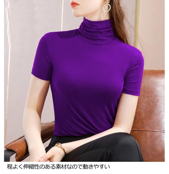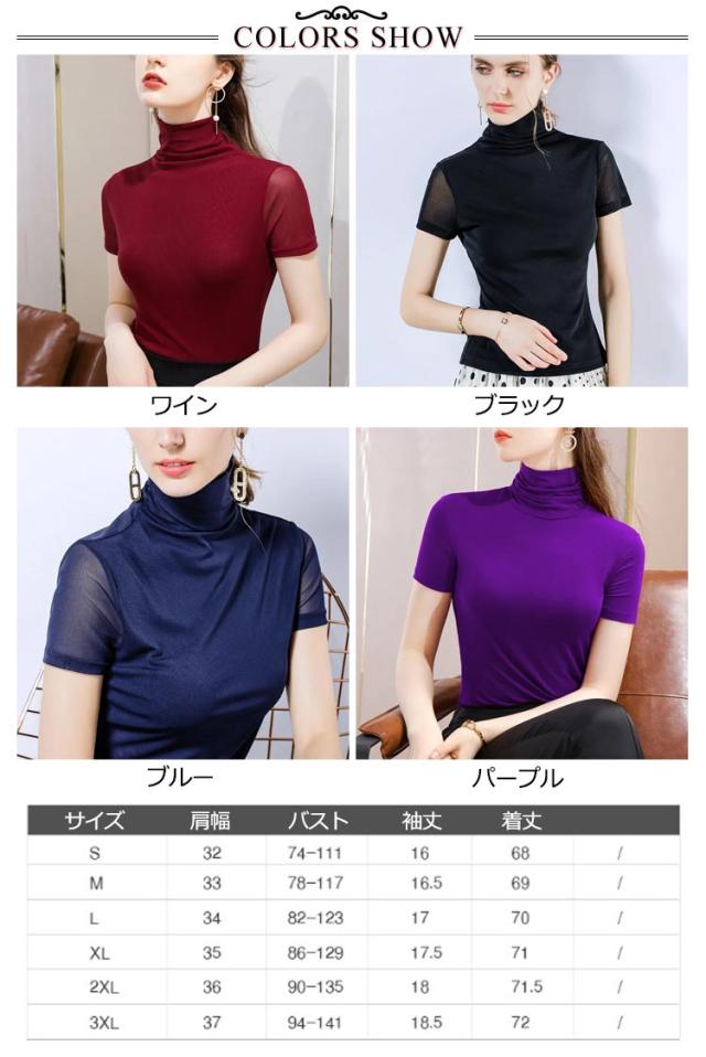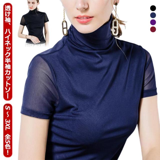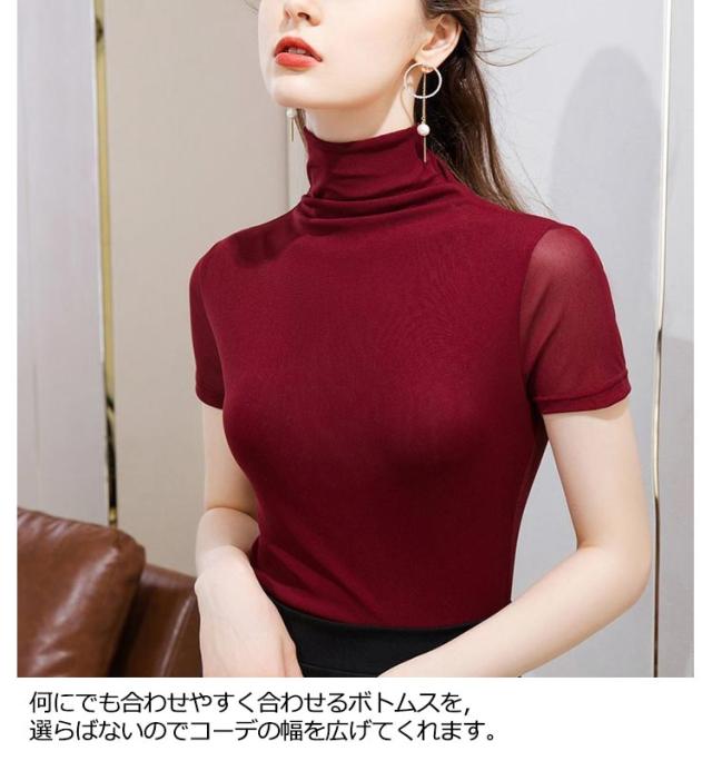 フィット Tシャツ 重ね着 シャツ t レディース 半袖tシャツ カットソー ストレッチ 半袖 レイヤード タートルネック ハイネックtシャツ メッシュ素材 無地 インナー 袖 トップス ハイネック スリム 大きいサイズ 春夏 秋 スリム