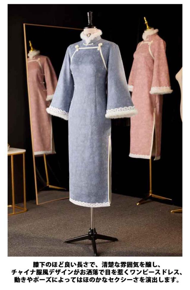 和柄 可愛い チャイニーズ ドレス チャイナ 高級 中華 ファー 韓国 秋 ワンピース 長袖 服 冬 チャイナドレス レディース 花柄 スタンドカラー ミドル丈 柄 チャイナ 和風 レトロ タイトめ フレア袖 セクシー コスプレ 個性的 目立つ 高級感 刺繍 きれいめ スリット