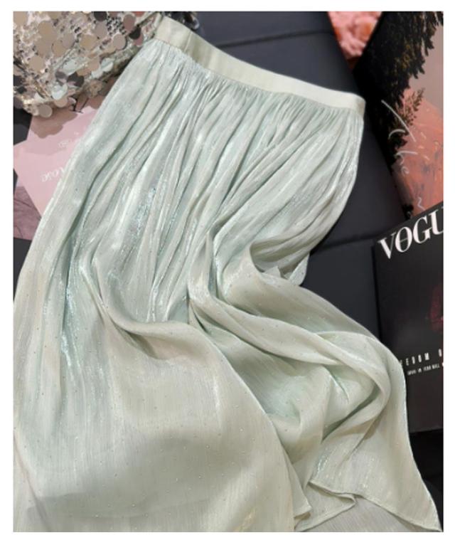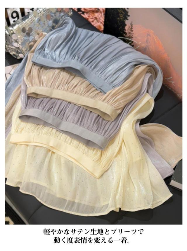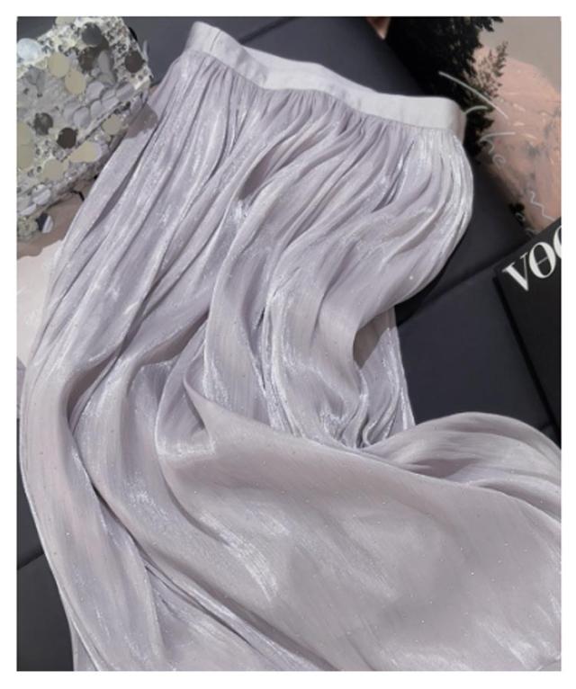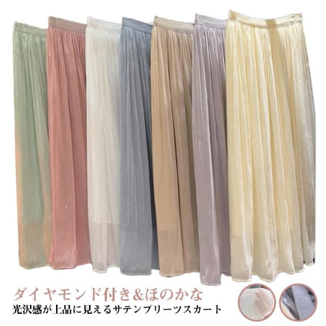 ボトムス マット スカート プリーツ Aライン 裏地付き プリーツスカート サテン ゆったり ダイヤモンド付き 光沢 無地 高級感 ロングスカート ウエストゴム マキシ丈 ロング丈 ロング 大きいサイズ 春 夏 秋 夏服 韓国ファッション