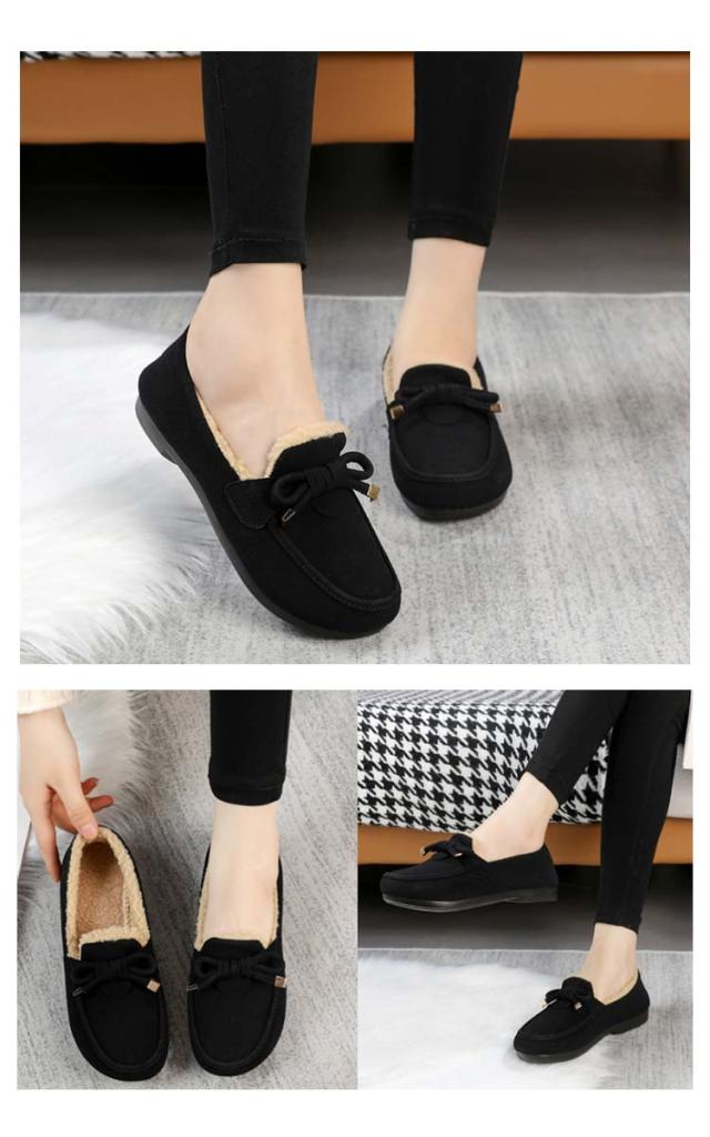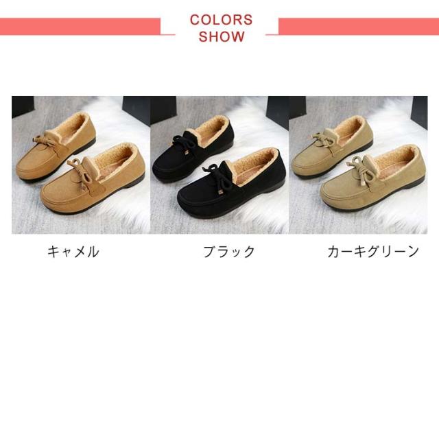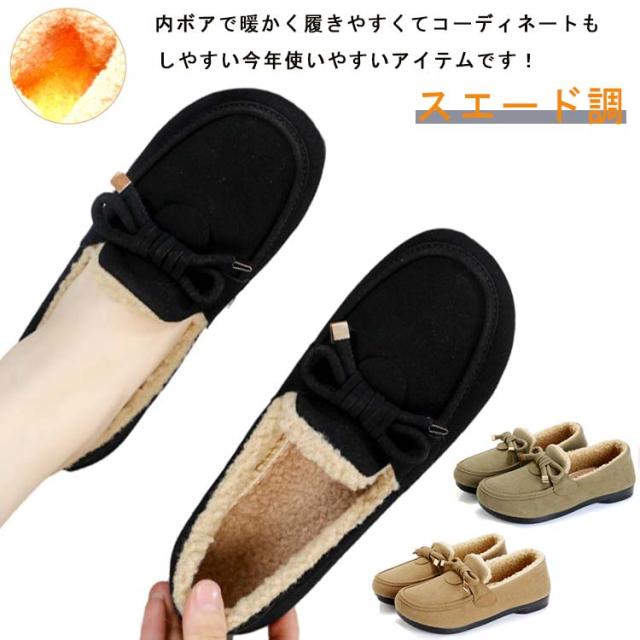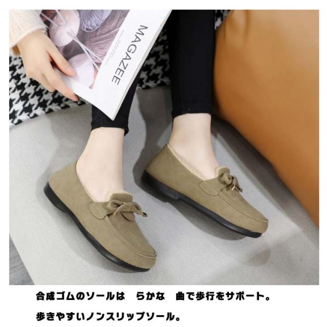 レディース リボン ローファー モカシン あったか シューズ モカシンシューズ おしゃれ フェイクファー ムートン スエード調 もこもこ ローファー ファーモカシンシューズ スリッポン ぺたんこ 冬 軽量 内ボア 裹起毛 秋 ボア
