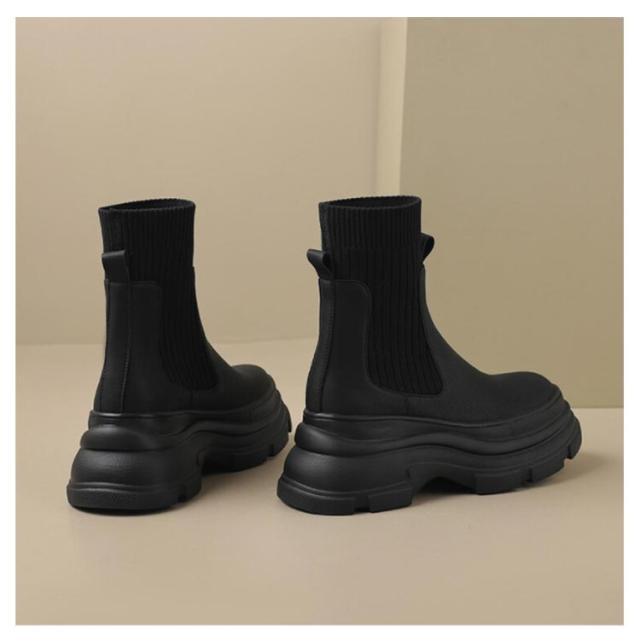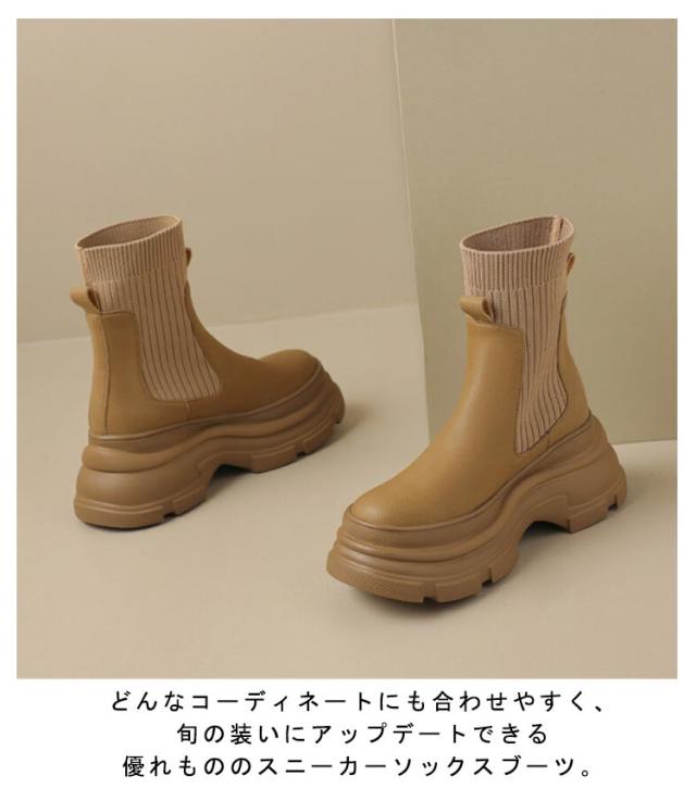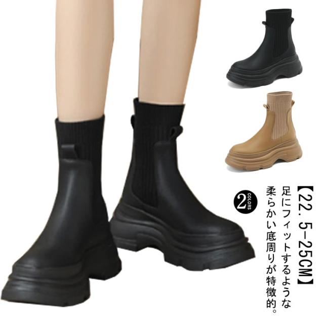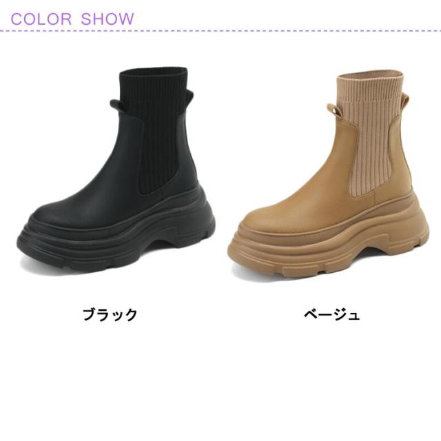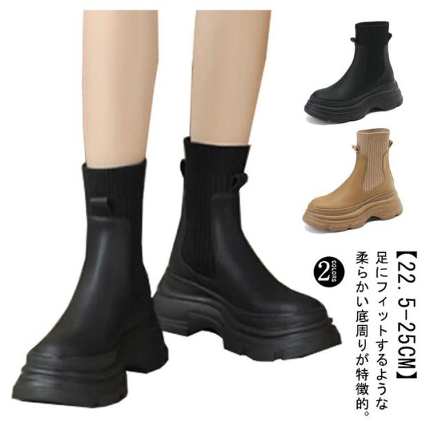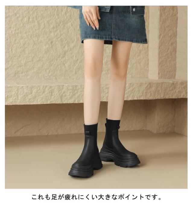 美脚 ショートブーツ アンクルブーツ 秋 冬 ブーツ シューズ 春 PUレザー ソックスブーツ 厚底 靴下ブーツ ミドル丈 ソックスブーツ 疲れない 安定感 歩きやすい レディース ラウンドトゥ レディース靴 ストレッチブーツ ストレッチ 伸縮性 通学 通勤