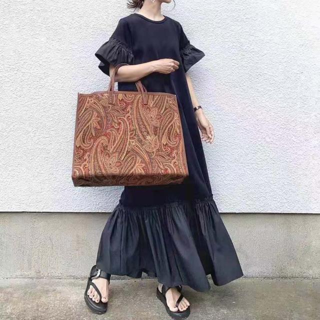 ワンピース マキシ丈 半袖 ボリューム袖 韓国 コーデ ドレス こなれ感 お出かけ 薄手 涼しい ロング丈 カジュアル おしゃれ 夏 レディース 春 夏 秋 ブラック 黒 20代 30代 40代 50代 送料無料