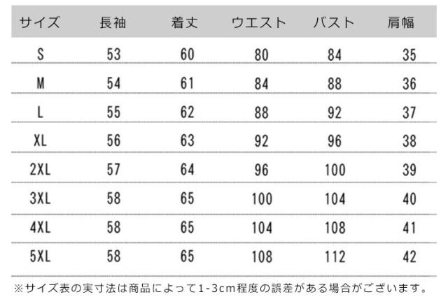 | サイズ | S M L XL 2XL 3XL 4XL 5XL |