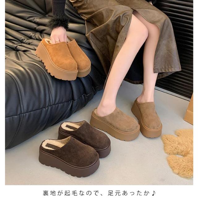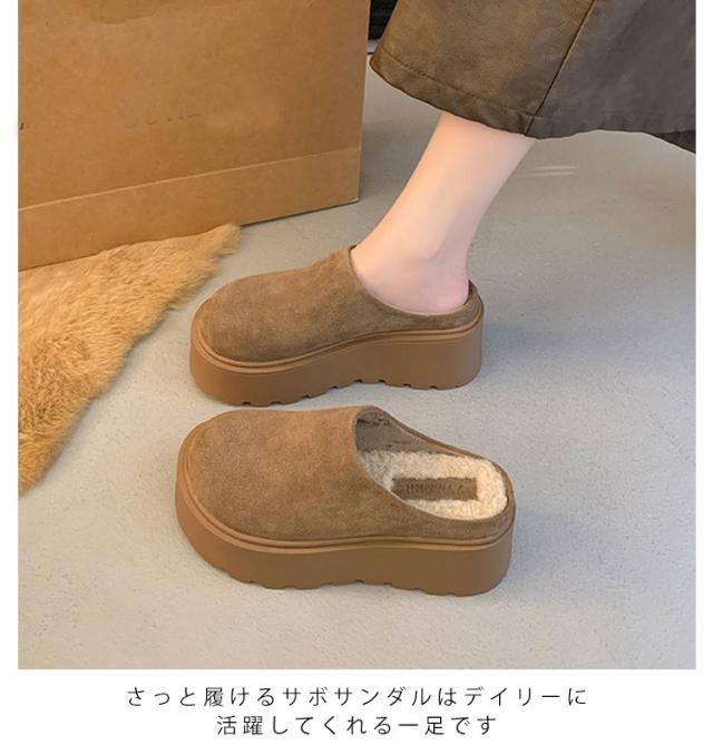 裏起毛 厚底 サボ シューズ レディース 暖かい サンダル オフィスサンダル 8cmヒール 防寒 ミュール 軽量 かかとなし サボ 秋