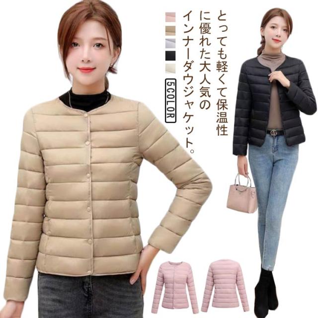 インナーダウン ジャケット 中綿ジャケット レディース エコダウンジャケット ライトダウン アウター 軽量 保温 防寒 通勤 通学 アウトドア インナージャケット 中綿コート 2way襟 クルーネック Vネック 無地 シンプル ショート丈 コンパクト 秋 冬 春 送料無料