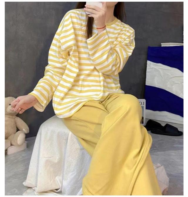 ルームウェア 長袖 レディース パジャマ 秋 着心地 カップ付き 春 産後 ナイトウェア 夏 寝間着 ナイトウエア 冬 部屋着 入院 ボーダー柄 ロングパンツ