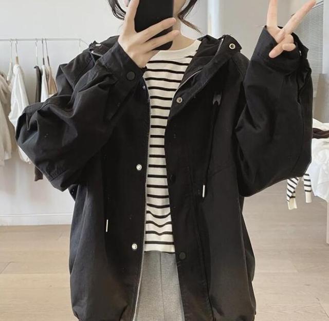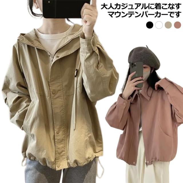 秋アウター ブルゾン 韓国 ライトアウター マウンテンパーカー アウター 秋 レディース 春 カジュアル 裏地付き 学生 ショート丈 薄手 ゆったり ブラック 大人 20代 30代 40代 通勤 通学 パーカー ホワイト ベージュ レディース ジャケット