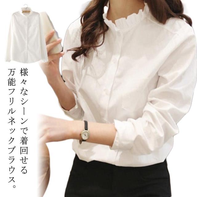 ブラウス フリルネック レディース 送料無料 Yシャツ 夏 スタンドカラートップス 通勤 フリル 入学式 白ブラウス ビジネス 白シャツ OL きれいめ 大きいサイズ フォーマル オフィス カジュアル フリル 長袖 秋 学園祭 七五三 卒業式 送料無料 成人式 入園式