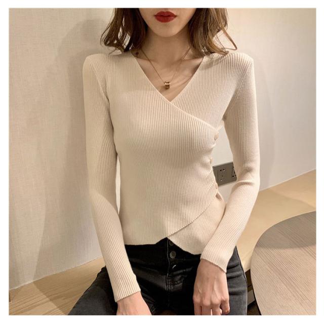 オフィス ニットセーター ボタン 冬 長袖 Vネック クロスニット トップス セーター リブニット インナー きれいめ 春 秋 プルオーバー フィット レディース