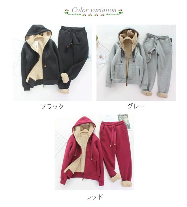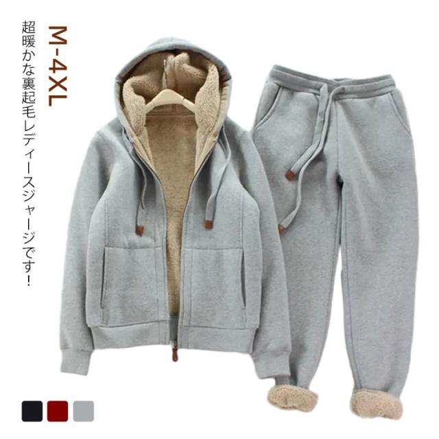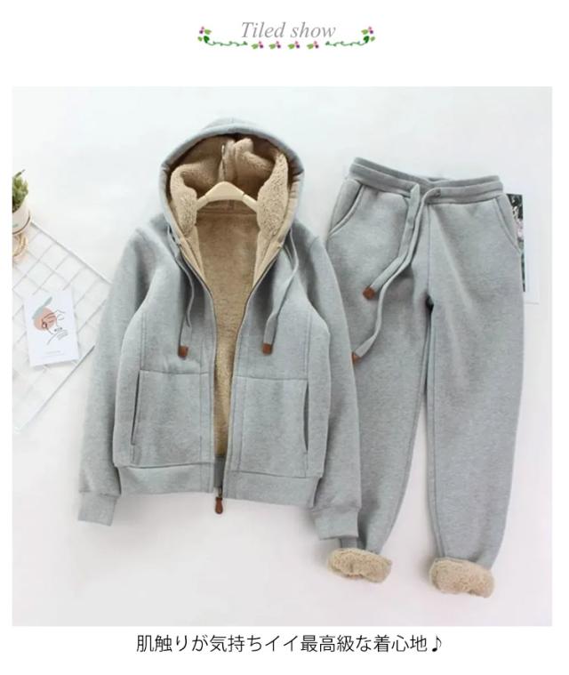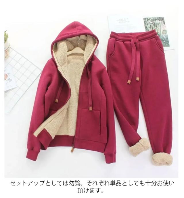 裏起毛 冬 裏ボア スポーツウエア ジョガーパンツ 上下 2点セット ジップアップパーカー セットアップ ジャージ 50代 40代 厚手 防寒 秋 レディース