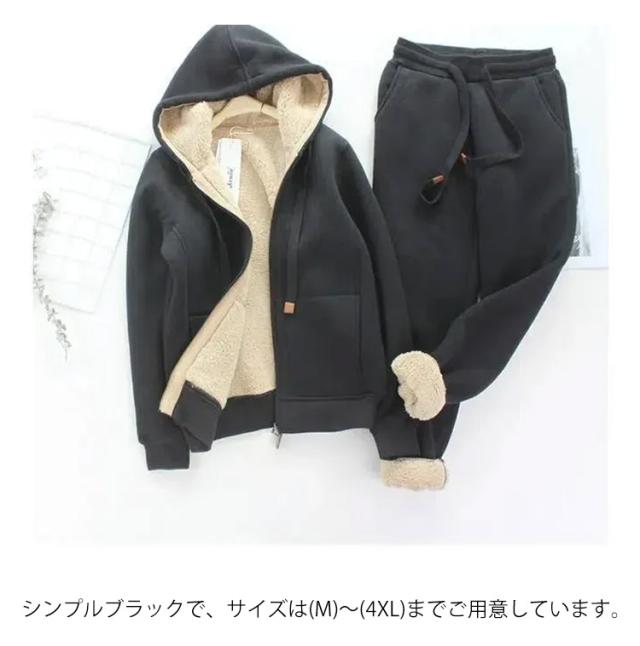 | M?4XL!超暖かな裏起毛レディースジャージです! 肌触りが気持ちイイ最高級な着心地♪ セットアップとしては勿論、それぞれ単品としても十分お使い頂けます。 シンプルブラックで、サイズは(M)?(4XL)までご用意しています。 パンツはウェストゴム仕様で楽チン。 スポーツやちょっとしたお出掛け、部屋着(ルームウエア)としてお勧めのアイテムです。 敬老の日のプレゼントにも最適。 | |