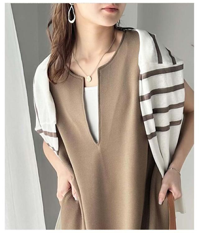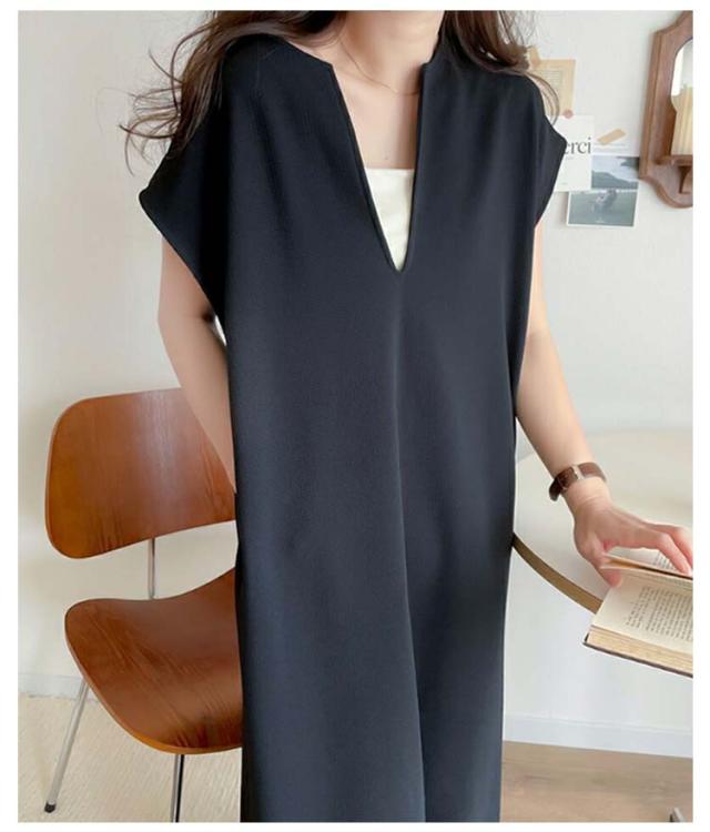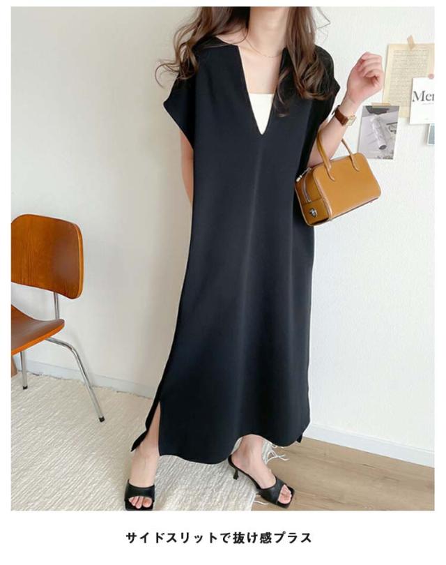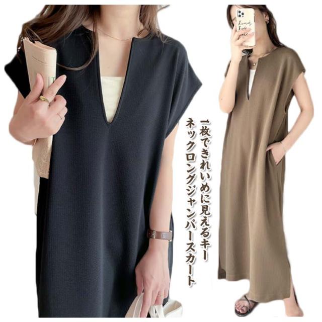 ジャンスカ レディース 秋 深め ジャンパースカート ロング 大人 ロング丈 春 サイドスリット レイヤード 夏 キーネック シンプル 無地 体型カバー ゆったり コーデ ワンピース 上品 送料無料