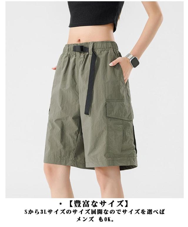 サーフパンツ 水陸両用 カーゴパンツ ハーフパンツ レディース ボードショーツ ハーフパンツ 短パン ロング 水着 夏 ひざ下 ハーフパンツ ウエストゴム ハーフ 通気 体型カバー 速乾 ミリタリーパンツ ナイロン ベルト スポーツ 黒 薄手 M L XL 2XL 3XL
