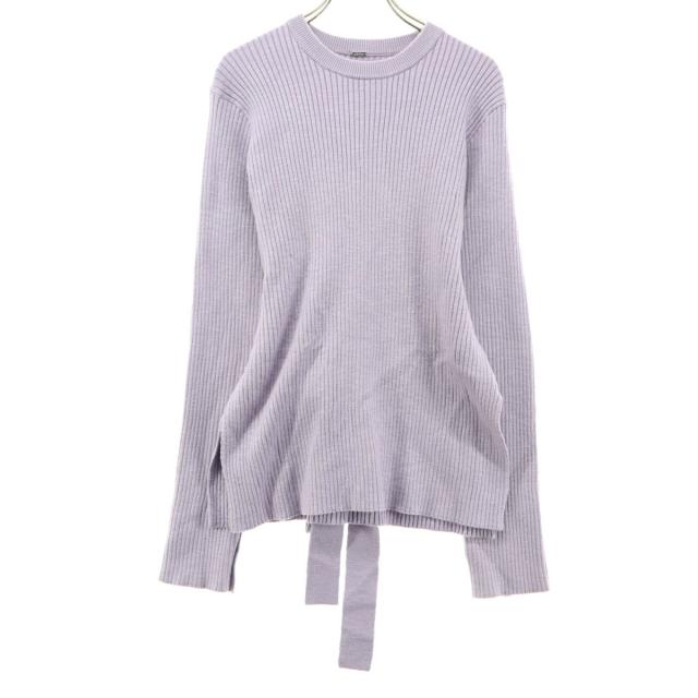 美品 ミラオーウェン 長袖 クルーネック ニット 0 パープル Mila Owen リボン付き レディース