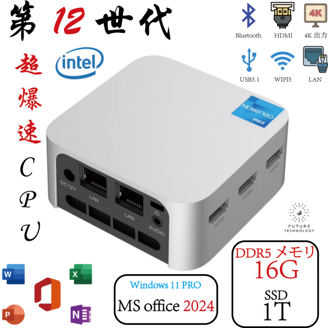 ミニpc DDR5 16GB 1TB MS office 2024 搭載 小型 デスクトップパソコン 一体型pc Windows11 在宅勤務 省スペース N150 パソコン コンパクト型 新品 office付き